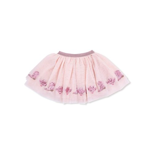Let your little one gallop into style with this Pink Boot Tutu—a spirited Western-inspired skirt that transforms playtime into a rodeo adventure. Featuring shimmering sequin cowboy boot and hat details, a glittery waistband, and layers of twirly tulle, it's designed for kids who love to dance, prance, and make a sparkly statement. The soft, stretchy waistband and easy pull-on design mean less fussing and more fun, whether she's performing at a birthday party, playing dress-up at home, or living out her cowgirl dreams. Perfect for adding a touch of glitz and Western charm to any occasion.