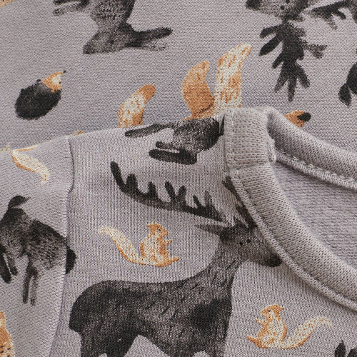 This long-sleeve onesie features a playful Forest Friends pattern on cozy cloudburst Jersey knit fabric. Crafted for both comfort and cuteness, it’s perfect for keeping your little boy stylish during everyday adventures or relaxed moments.