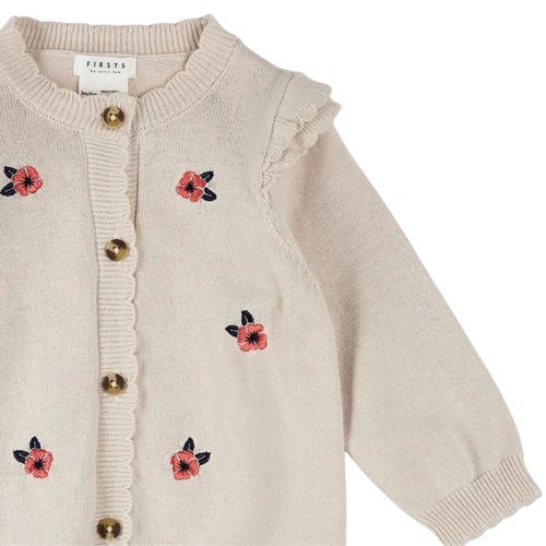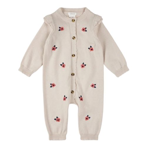 Snuggle your sweetie in the softest style with this adorable Petit Lem playsuit! Featuring a warm beige knit base adorned with charming poppy embroidery, this long-sleeve wonder combines comfort with cuteness. The convenient button-front closure makes diaper changes and bedtime a breeze, while the cozy fabric keeps little ones happy from playtime to dreamtime. Perfect for creating those precious moments in style.