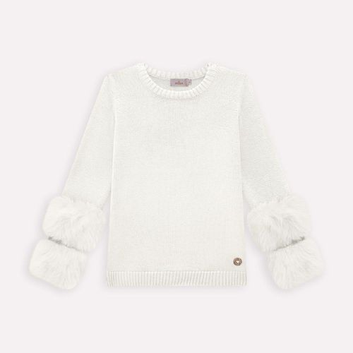 Elevate your girl's everyday style with this charming off-white sweater that's equal parts cozy and chic. Crafted from a premium cotton-acrylic blend, it delivers the perfect balance of warmth and breathability. The real showstopper? Luxurious faux fur trim adorning the sleeves, adding a playful touch of glamour that transforms a simple sweater into something truly special. Whether she's heading to school or a weekend adventure, this piece brings effortless sophistication and fun to any outfit.