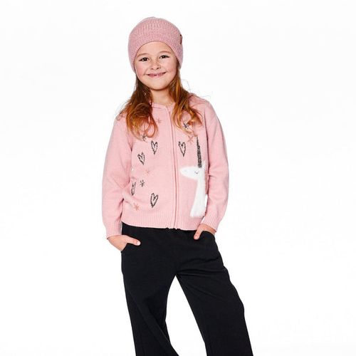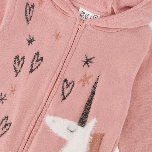 Bring a touch of magic to every chilly day with the Knit Zip Hoodie in Jacquard Unicorn Rose. Crafted from a soft, cozy knit blend, this hoodie wraps your little one in warmth and comfort while sparking their imagination. The full-length zipper makes it easy to layer on or off, and the ribbed trims add a polished finish to the cozy design. Featuring delightful jacquard details of unicorns, stars, and hearts, it brings playful charm to any outfit. Perfect for school, playdates, or lounging, this hooded cardigan turns everyday moments into magical adventures.