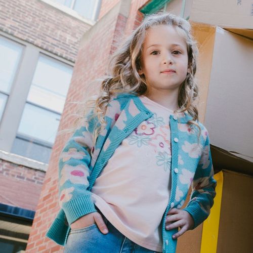 The Lotus Long Sleeve T-Shirt brings a delightful and cozy vibe to her closet. Crafted from soft organic cotton blended with a hint of elastane, it offers long raglan sleeves and a timeless round neckline. Featuring big, cheerful floral prints, this cute tee adds a fun splash to any outfit. Great for everyday adventures, it pairs effortlessly with skirts or pants for a playful look.
