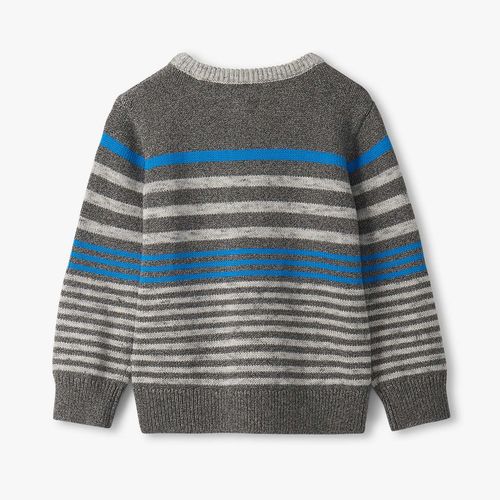 The Boys Speckle Stripe Crew Neck Sweater delivers cozy vibes with a splash of fun, made from a soft cotton-acrylic mix that keeps warmth and wear in check. Its long sleeves and classic crew neck with ribbed edges set the stage for a cool, striped look in shades of grey, brightened up by cheerful blue stripes on the chest and arms. Finished with ribbed trims at the neck, cuffs, and hem, this sweater hugs just right, making it perfect for school adventures, weekend fun, and everything in between.