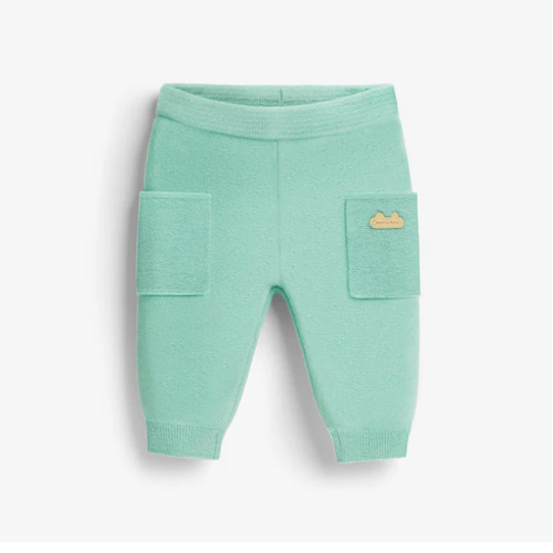 These turquoise knit joggers are all about easy-breezy comfort for your little one. Crafted from soft, touchable cotton knit, they feature a snug ribbed waistband and ankle cuffs that stay put during playtime. Functional side pockets keep small treasures safe, while decorative front buttons bring a fun finishing touch. Whether it's naptime, playdates, or casual adventures, these joggers deliver cozy style that keeps up with active kids.