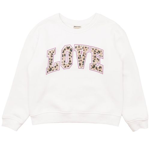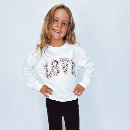 This slightly oversized sweatshirt is a blend of comfort and timeless style all in one. The fit, quality, and awesome screen-print graphic give this sweatshirt seriously cool and comfy vibes—making it perfect for cool summer nights, brisk winter days, and everything in between. Whether she's lounging at home, heading out for adventures, or just wanting to feel cozy and confident, this ivory beauty delivers the perfect mix of laid-back charm and effortless cool. The relaxed fit means room to move and grow, while the durable construction keeps up with active kids. A true wardrobe essential that works as hard as she does, this sweatshirt is destined to become her go-to favorite for year-round wear.