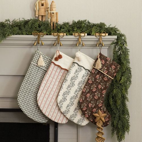 Hang our Christmas stockings from your mantel. With delicate trims and patterns, and a loop for hanging.