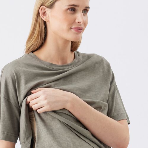 Introducing Claud—the nursing essential that's anything but basic. Woven from a luxe cotton-modal blend, this tee delivers a silky stretch that hugs you just right. Style it long for everyday ease or crop it with a simple tuck for a fresh look that works with everything from tailored trousers to your favorite denim. The clever lift-up front layer makes nursing a breeze while keeping things discreet and chic. With its relaxed fit, crew neck, and short sleeves, Claud is the go-to piece you'll reach for again and again—whether you're heading to the office or out for the weekend.