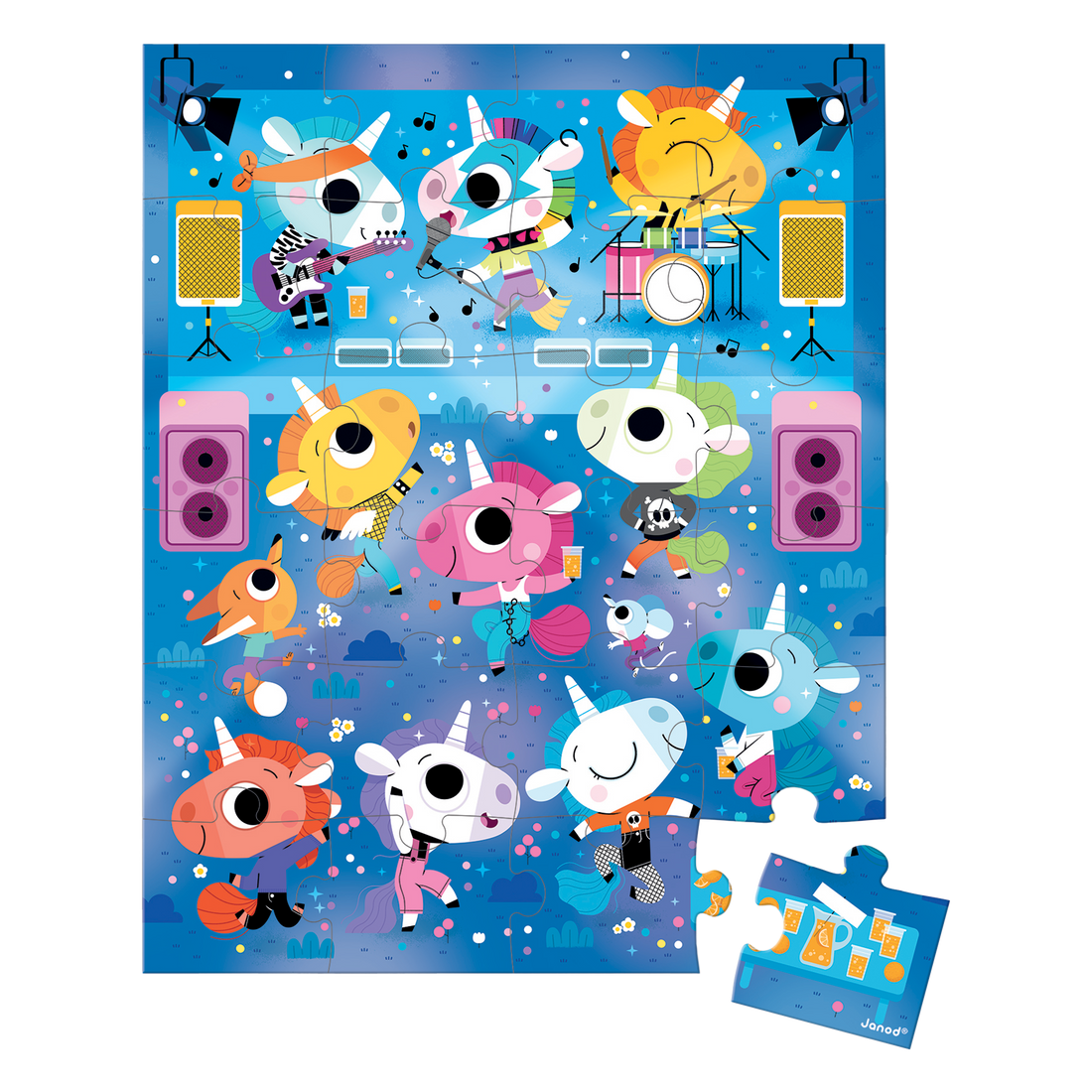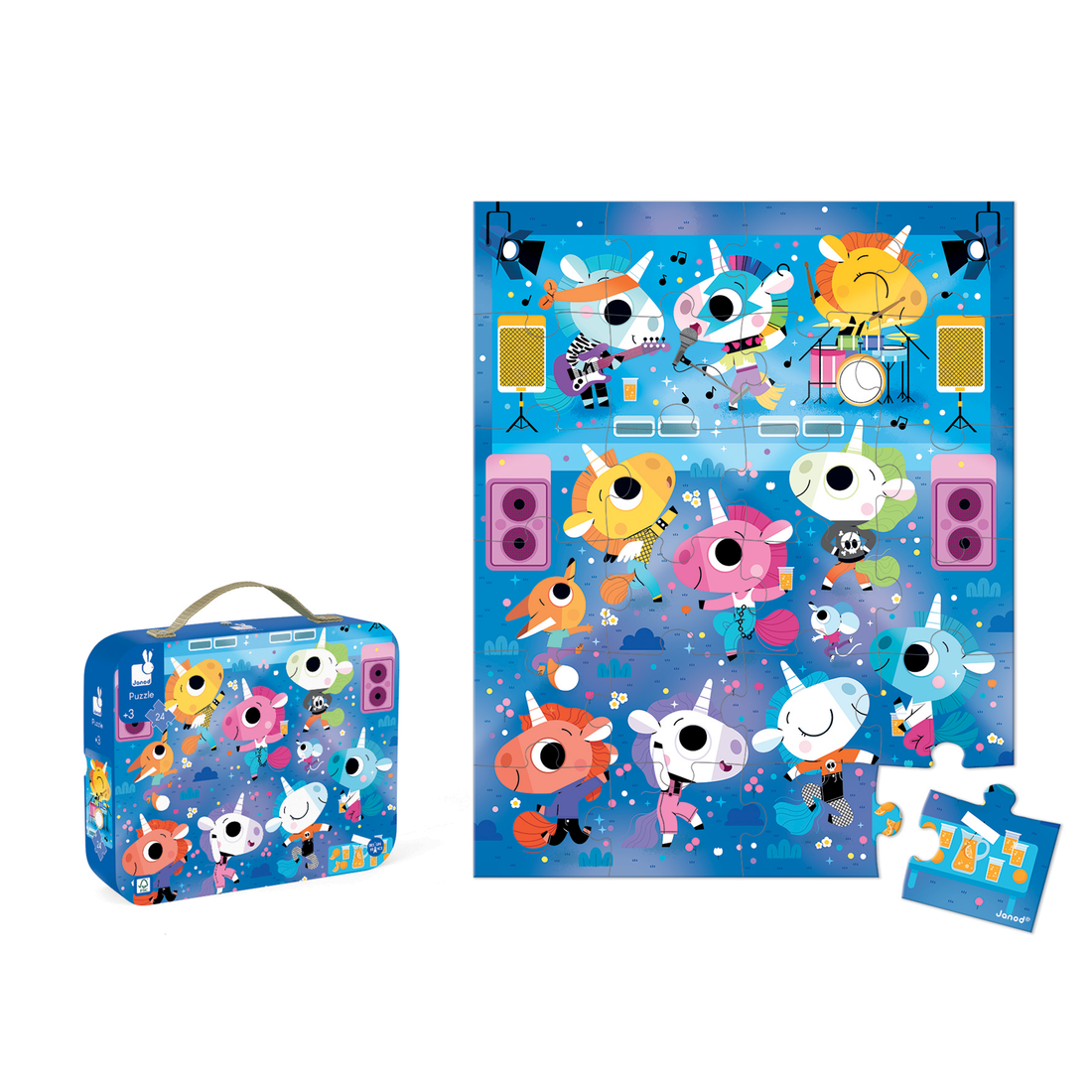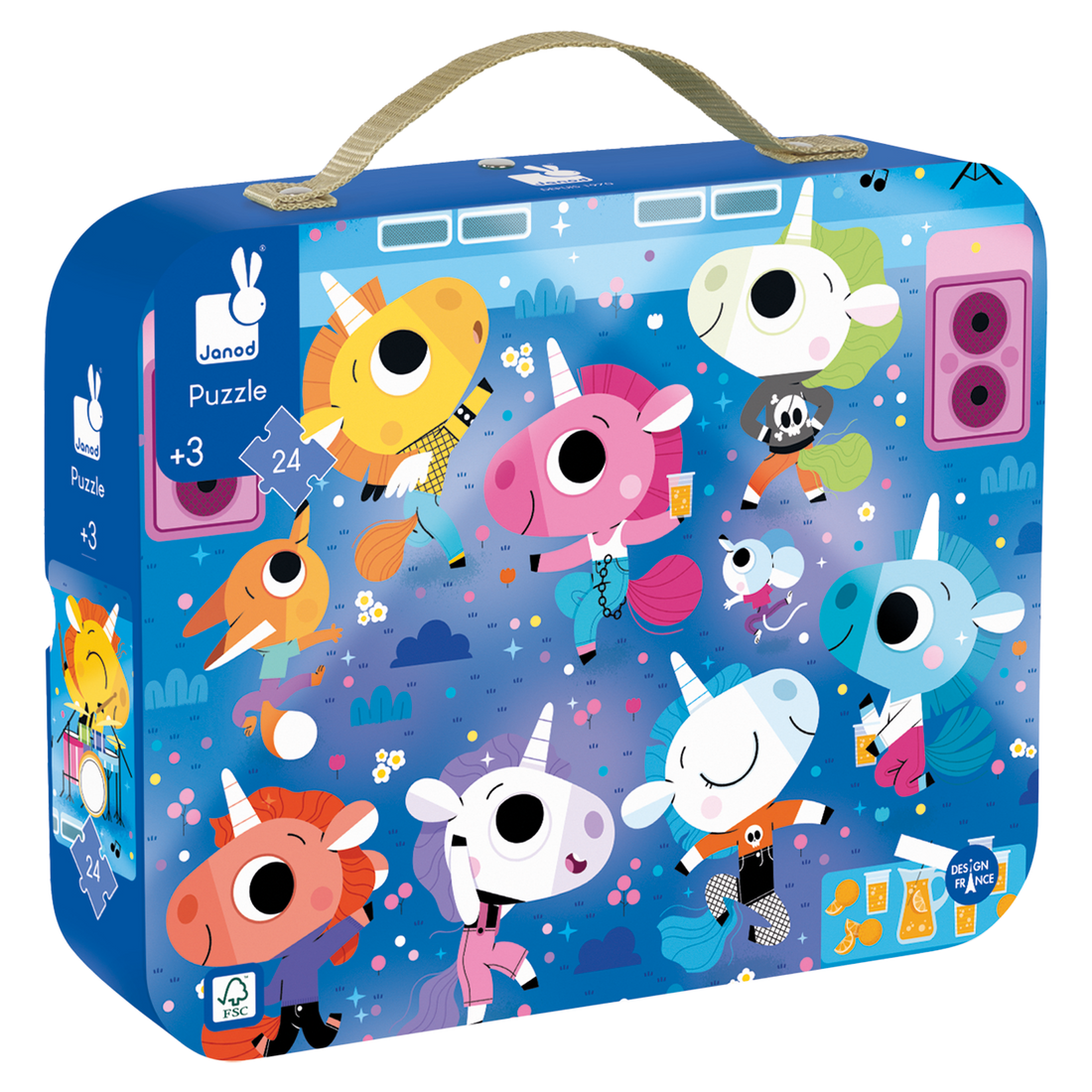 Get ready for a glittery good time! This 24-piece puzzle features fabulous unicorns rocking out at an epic concert. Perfect for little puzzle enthusiasts aged 3+, each piece is sized just right for developing hands. Crafted in France with sparkly style, it comes in a handy carry case so the fun travels wherever you go!