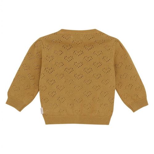 The Girls' Terryville Cardigan from Noppies Baby is a delightful addition to your little one’s wardrobe, crafted from soft, GOTS-certified cotton (CU1392474) that’s gentle on sensitive skin. This cozy cardigan features adorable eyelet heart patterns that add a touch of whimsy, perfect for playful days and cuddly moments alike. Designed with long sleeves and a comfy round neckline, it keeps your child warm while allowing easy movement. The front buttons make dressing quick and fuss-free, ideal for busy mornings or quick outfit changes. This cardigan blends comfort, style, and sustainability in one charming package.