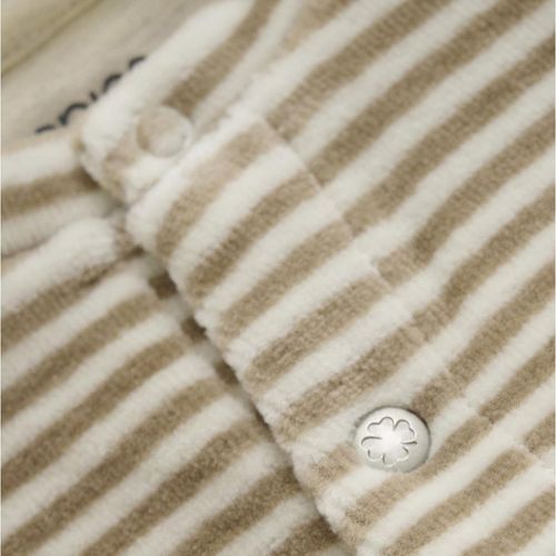 The unisex Souci playsuit by Noppies Baby is crafted from GOTS-certified cotton (CU1392474) for ultimate softness. It sports a fun striped pattern, a cozy round neckline, and convenient snap buttons down the front and between the legs. These snaps make dressing and diaper changes a breeze, so your little one stays comfy without needing to be fully undressed.