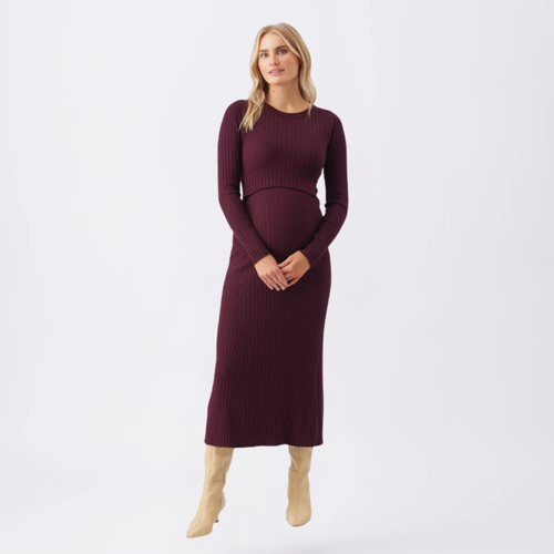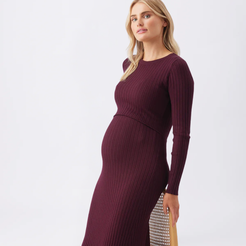 Based off our best-selling ribbed knit nursing dress, we've reimagined the Eden Knit Nursing Dress to feature a fitted bodice with an a-line skirt that flatters any shape. The soft knit design from a mix of viscose and nylon provides the utmost comfort and durability throughout your pregnancy and beyond. This dress features a classic round neckline, long sleeves, and the convenient lift-up front offers discreet and easy nursing access.