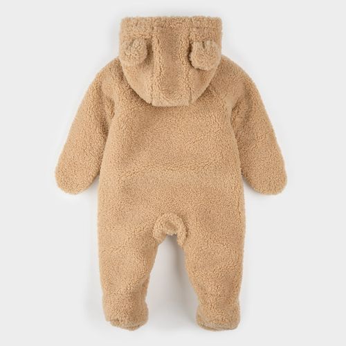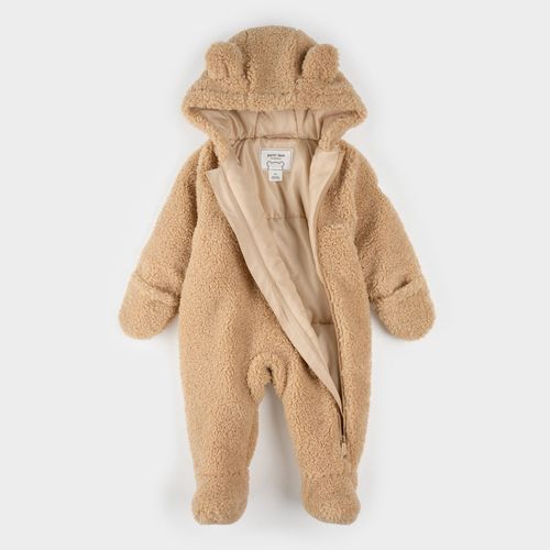 Wrap your little one in warmth and snuggles with this teddy bear-style sherpa playsuit. Lined with soft organically grown cotton jersey, this cozy playsuit is perfect for the colder months and keeping them cozy while they snooze in the stroller. Reversible mitts protect their tiny hands with the option to leave them open to play with snow for the first time. Bear ears on the hood adds extra cuteness to the piece, making it an irresistible gift for new parents.