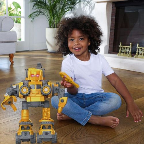 Each of the Edushape 5-in1 truck-o-bots adjusts and connects to become another part of a huge, towering robot. Press the button on its head and it comes to life with thrilling lights and sounds! Build their imagination with this fascinating STEM adventure.