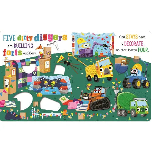 You must never touch the dirty diggers . . . unless they’re in this book! This funny, vehicle-filled counting book has bumpy silicone touches throughout, perfect for little ones to explore. Children will love turning the page and watching one digger disappear each time. A fun addition to our bestselling Never Touch range, this witty board book will entertain the whole family.