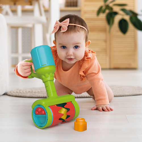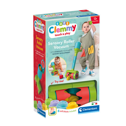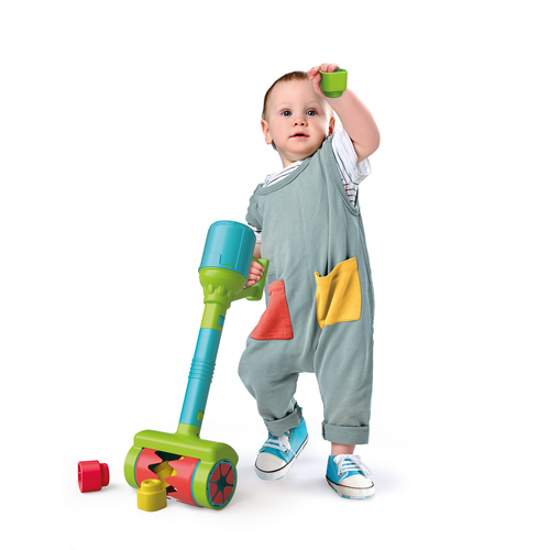 Clemmy's vacuum cleaner toy brings sensory play to life by “collecting” soft building blocks during pretend clean-ups. An adjustable handle grows with your child, supporting motor skills and encouraging imaginative, everyday role play.