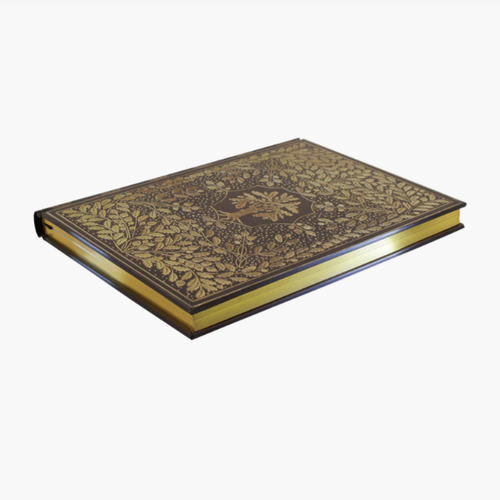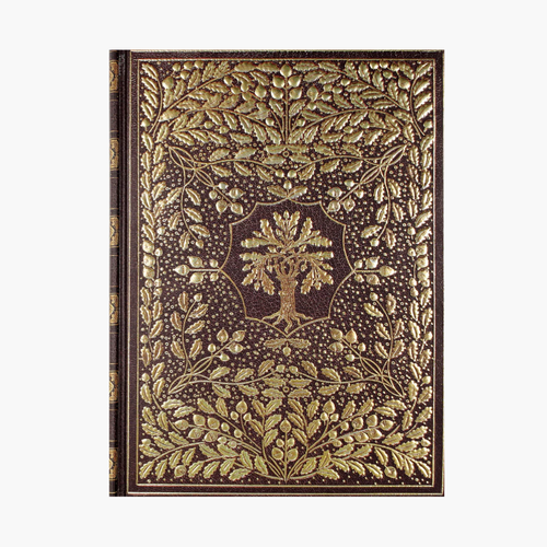 Inspired by a vintage literary treasure, this Gilded Tree of Life Journal brings timeless elegance to your daily musings. Wrapped in supple Morocco goatskin leather with an embossed cover that catches the light with iridescent shimmer, it's a journal that feels as good as it looks. Inside, 160 pages of premium 120 gsm acid-free paper invite your pen—whether you're sketching, journaling, or collecting favorite verses. Subtle gray guidelines keep things tidy without fussing. Gold-gilded edges and a matching spine add that luxe finishing touch, while the ribbon bookmark ensures you never lose your place. At 6¼" × 8½", it's the perfect size for slipping into a bag or settling on a nightstand. A journal that transforms everyday writing into something special.