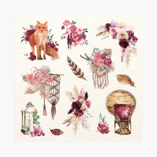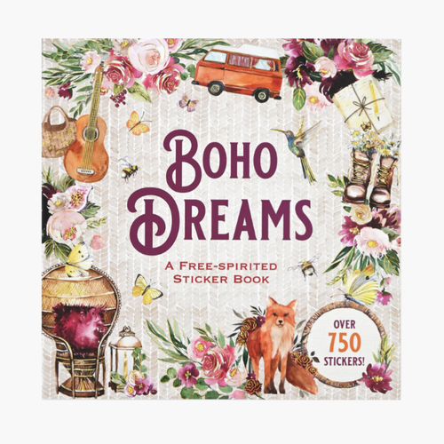Unleash your inner artist with this boho-inspired sticker collection! Packed with over 750 colorful stickers across 50 pages, you'll find everything from dreamy feathers and blooming flowers to mystical crystals and whimsical wildlife. Mix and match dozens of sizes and styles to decorate journals, planners, scrapbooks, and more. Each premium sticker features vibrant, long-lasting color and a quality finish that sticks around. The sturdy 6½" square book is your portable creative companion, ready to add a splash of bohemian magic to any project.