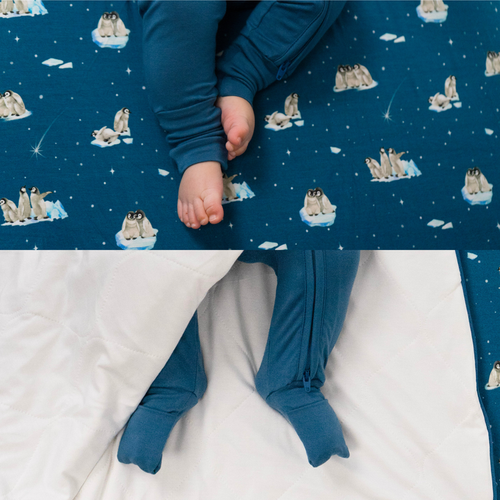 Snooze in style with our Night Sky footless sleepers—crafted from luxuriously soft bamboo that's breathable, stretchy, and built to handle countless washes. The fabric feels like a cloud against delicate skin while keeping little ones cozy all night long. Smart design touches include foldable mittens (perfect for newborns through 6-12 months) and snug cuffs on all footless styles up to 3T, so tiny hands and ankles stay warm and protected. Sweet dreams guaranteed!