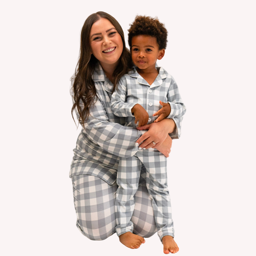 Our Classic Kids PJ set is crafted with our premium bamboo rayon, making these a dream to sleep in. With a classic button down top and straight legged pants, these PJ are all style! Fabric is digitally printed with our gender neutral Denim Plaid. Pair with our Women's Classic PJ set for some family matching!