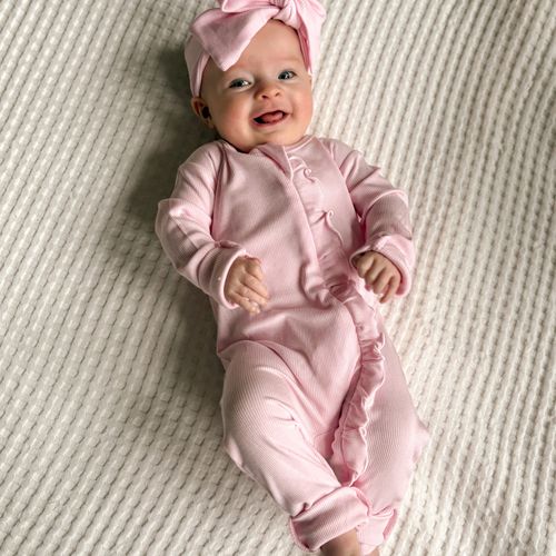 Our top selling zipper sleeper featuring a double ended "kissing" zipper with a chin-guard and zipper guard. The fold over hands and feet (up to a 6-12M) keep baby cozy, prevent scratches and make for easy wear from day to night. No wonder she's loved among all! Zipper sleeper fits true to size!
