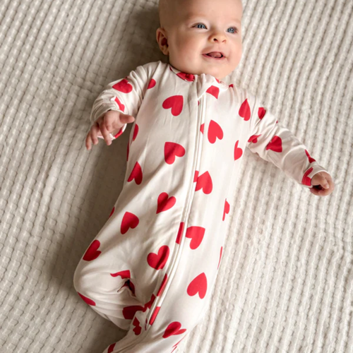 Prepare to fall hopelessly in LOVE with our new Red heart print, this simple but classic print will be the perfect addition to your little one's sleeper collection!