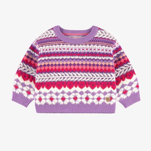 Your little one will absolutely love this charming purple knit sweater designed with playful style in mind! The eye-catching fuzzy white patterns create a wonderfully tactile experience that kids can't resist touching—it's like wearing a cozy hug with personality. Thoughtfully crafted with a comfortable crew neckline for baby sizes and high zip-up collar for children, this sweater features snug rib-knit cuffs and hem that keep everything in place during active play and adventures. The clever side slits at the hem add a touch of sophistication while allowing for easy movement, whether your child is running around the playground or snuggling up for story time. Perfect for layering over long sleeves or wearing on its own, this sweater combines durability with delightful design. It's the kind of piece that becomes an instant favorite—soft, stylish, and made for the way kids actually play and grow!