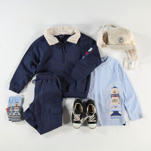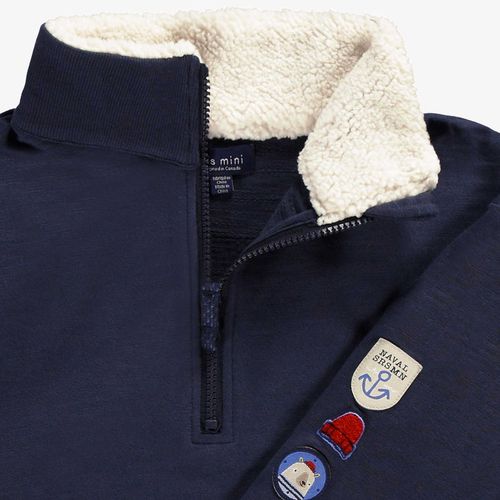 This navy blue ¼ zip sweater combines comfort and style effortlessly. Its relaxed fit and long sleeves make it perfect for layering or wearing on its own during cooler days. The charming cute patches add a fun touch to the front, while the kangaroo pocket gives you a cozy spot to warm your hands or stash small essentials. Finished with ribbed knit hem and cuffs, this sweater stays snug and in place as you move. Ideal for casual outings or cozy indoor days, it’s a playful addition that brightens up any wardrobe with ease.