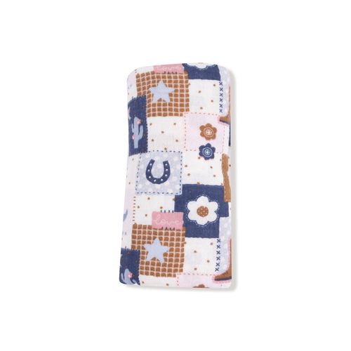 Snuggle up with our Patchwork Cowgirl Swaddle Blanket—a 47x47" essential crafted from soft, breathable organic cotton muslin. Whether you're swaddling, nursing, or catching some tummy time, this lightweight wonder keeps your little buckaroo cozy without the heat. The generous size makes it perfect for stroller covers, burp cloths, and cuddle sessions. Gentle on delicate skin and ready for anything from naptime adventures to playtime fun, this versatile blanket is the trusty sidekick every nursery needs!