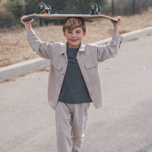 Saddle up for style! This Frontier Corduroy Shirt brings that cool cowboy vibe with a contemporary twist. Crafted from feather-light, silky-soft corduroy, it's the perfect layering buddy when temperatures drop. Throw it over a favorite tee for extra warmth, or rock it solo buttoned-up for maximum charm. Your kiddo will love the effortless cool factor this piece brings to their wardrobe.