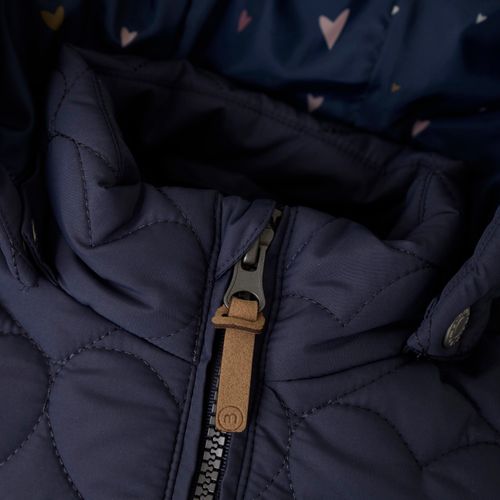 This long quilted jacket for girls from Minymo combines fun style with cozy warmth. Its extra length keeps chilly winds at bay, while shiny reflective details make sure your little one stands out safely. With a handy hood, side pockets, plus windproof and waterproof features, it’s perfect for all her outdoor adventures.