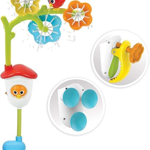 Transform bath time into a captivating sensory adventure with this innovative mobile! Featuring whimsical spinning flowers and a playful bird that swivels and sprays, it delivers delightful water play and visual stimulation.