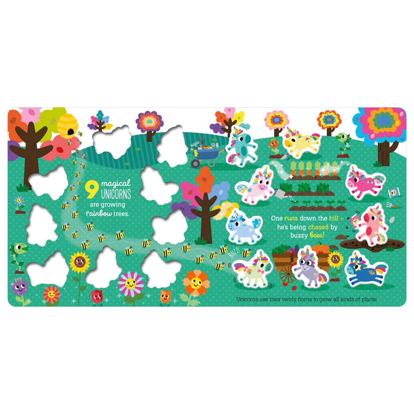 Practice counting down from ten with the magical unicorns! This sweet board book has ten unicorn-shaped blisters that disappear one by one with the turn of each page. There’s plenty for little ones to explore!