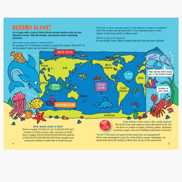 Dive into the mysteries of the ocean with this engaging exploration of aquatic wonders! From the darkest depths to the most incredible sea creatures, this book answers all those burning questions kids have about our planet's waters. Packed with hilarious jokes, vibrant cartoon artwork, and mind-blowing facts, it makes learning about the seven seas absolutely entertaining. The question-and-answer format keeps information bite-sized and digestible, while the casual, witty writing style keeps young readers laughing and curious. Perfect for ages 7 and up, this sturdy hardcover features 48 pages of colorful illustrations and ocean-themed humor. Measures 6" wide x 9" high.