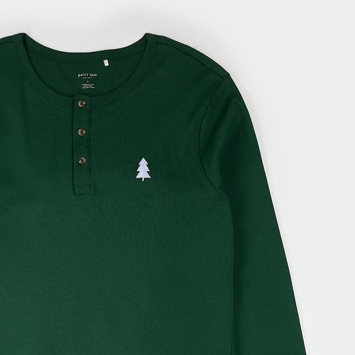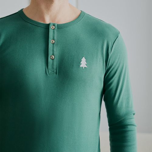 These cozy PJs for dad give him no reason not to get involved in family festivities. The two-piece set has a long-sleeved top with Henley buttons while the pants go heavy with a Fair Isle print. With elasticated, ribbed trims, the set is comfortable and easy to wear – whether you’re heading to bed or hanging with the family. Made from organically grown cotton rib, they’re light and breathable while still offering warmth and coziness.