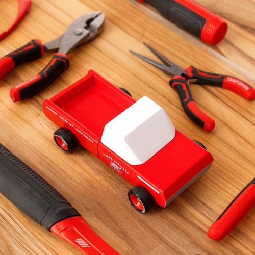 - Materials: Solid Beech Wood, water-based paint and clear urethane coat. ABS plastic rims, with rubber tires.