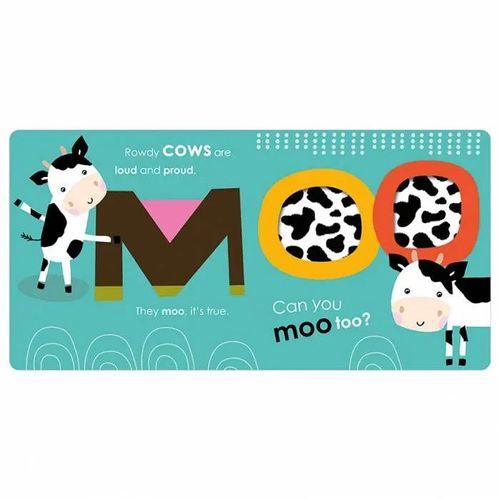 Baa Quack Moo - Board Book. With creative touch and feel letters on every spread, Baa Quack Moo brings something new to sensory board books! Clever rhymes and playful illustrations combine to introduce fun farmyard sounds. The fun text combines assonance and rhyme to teach little ones their first farmyard sounds. Stephanie Thannhauser’s simple illustrations will delight adults and children alike.