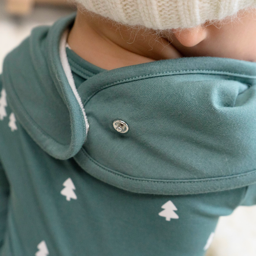 Keep those tiny chins dry and comfy with our leafy green bandana bib! Crafted from soft bamboo with a plush terry backing, this two-layer wonder soaks up drool and spit-up like a champ. Bamboo's natural moisture-wicking magic whisks wetness away, protecting delicate skin from irritation. Perfect for your little drool machine!