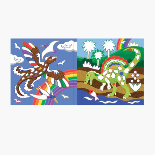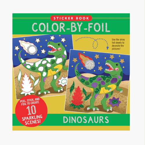 Transform ordinary scenes into dazzling masterpieces with this captivating dinosaur foil sticker book! Kids simply peel and press brilliant holographic foil onto sticky areas to reveal 10 eye-catching prehistoric pictures. Each perforated page tears out easily for proud display on walls or fridges. Packed with 72 shimmering foil sheets in six vibrant colors, this mess-free activity keeps little ones entertained anywhere—home, car, or waiting room. Perfect for developing fine motor skills while sparking imagination and creative confidence. Sturdy card-stock pages measure 8½ inches square and are built to withstand enthusiastic young artists. Recommended for ages 3 and up. Watch their faces light up as dinosaurs come to life in glittering color!