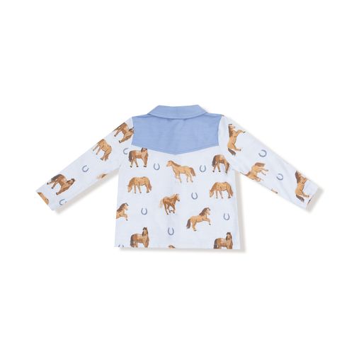 Saddle up for style! This Cowboy Button Down & Pant Set wraps your little one in buttery-soft viscose from bamboo—perfect for sensitive skin and all-day comfort. The snap-front shirt delivers authentic western charm, while the matching pants feature a cozy waistband ideal for playtime and special occasions alike. Breathable, easy to dress, and layering-friendly for cooler months, this set transforms everyday adventures into rootin'-tootin' fun. From backyard explorations to holiday celebrations, it's the go-to outfit for any pint-sized cowpoke.