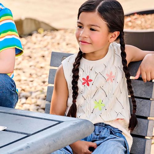 Delicate floral crochet details bring whimsical style to this lightweight knit top, ideal for warm-weather adventures from market strolls to outdoor gatherings. Crafted from soft cotton that's gentle on delicate skin, the relaxed silhouette gives plenty of room to play and move freely. Dress it up with a tank underneath for breezy layering on cool mornings, or let it shine solo when the sun turns up the heat.
