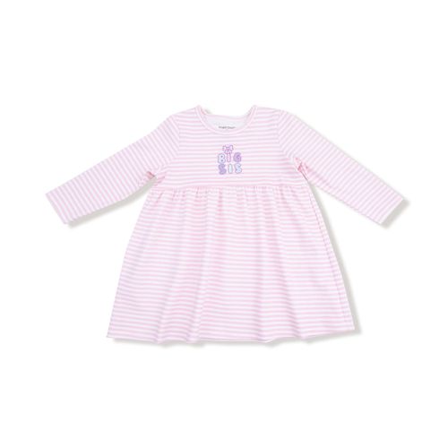 Let your little one shine as the amazing big sister she is with this charming Long Sleeve Striped Play Dress. Crafted from soft, breathable organic cotton jersey, it's gentle on sensitive skin and perfect for all-day comfort. The playful "Big Sis" applique celebrates that special sibling bond with style, while classic stripes keep things fun and versatile. Long sleeves provide cozy warmth for cooler weather, making it ideal for family gatherings, playdates, and everyday adventures. A delightful way to make her feel extra special and loved.