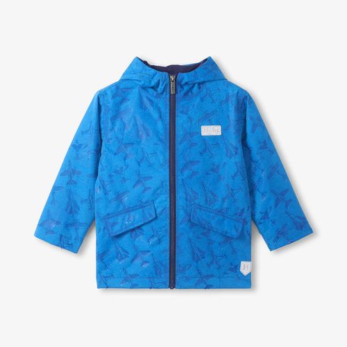 This rain jacket transforms into a flying spectacle the moment water touches it—hidden vintage aircraft suddenly burst into view as the color-reveal magic kicks in. Built from waterproof polyester with a warm, cozy lining, it keeps your boy comfortable and dry through any downpour. A reflective safety stripe on the back ensures he stays visible during outdoor play, while snap pockets keep essentials secure. From ordinary to extraordinary with every raindrop.