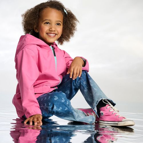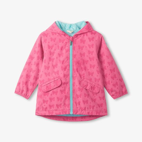 This waterproof rain jacket transforms into a canvas of colour when it meets the rain! Starting as vibrant pink, it unveils a stunning butterfly design the moment water touches it—making puddle-jumping an enchanting adventure. The soft aqua lining keeps little ones cozy, while the matching zipper and protective hood seal ensure they stay dry and snug. Elasticated wrists lock out moisture, and snap-flap pockets offer handy spots for treasures and toasty fingers. Every rainy day becomes a magical moment they'll actually look forward to!