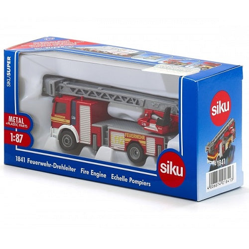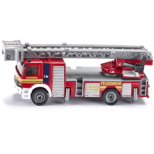 A beautiful turntable ladder truck based on a Mercedes Atego model by Metz, built to 1:87 scale. The ladder extends and rotates 360 degrees. The Siku model features two supports on each side, ensuring stability on any surface. Recessed headlights and a striking paint finish complete this popular model. The Siku fire truck ladder truck is made of metal with plastic parts.