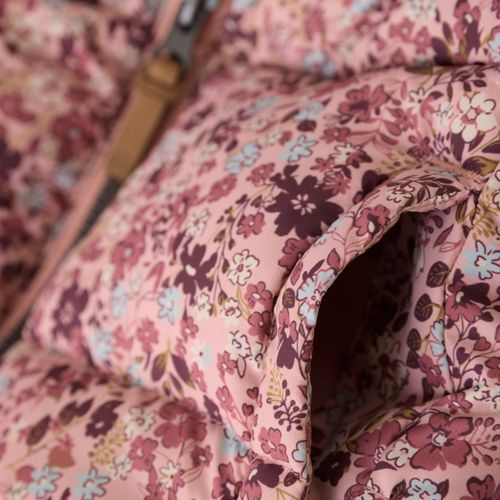 This kids' quilted jacket features a fun all-over Minymo print, blending style with cozy comfort. It comes with a handy hood and side pockets for extra convenience, plus reflective accents that help keep your little one visible in low light.
