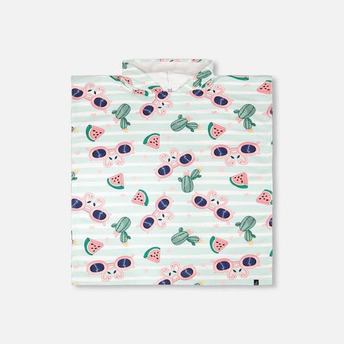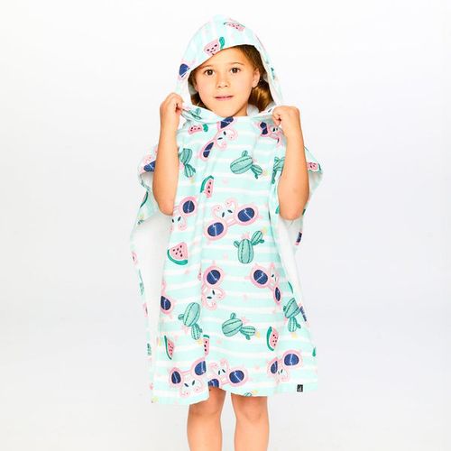 Let your little one stay snug and stylish with this vibrant hooded beach towel featuring a cheerful flamingo and cactus design. The soft polyester fabric absorbs moisture quickly while remaining lightweight enough to toss in any beach bag. An attached hood provides extra warmth and coverage when kids climb out of the water, making post-swim transitions smooth and cozy. Perfect for poolside fun or sandy getaways, this towel combines practicality with tropical flair that kids will love.
