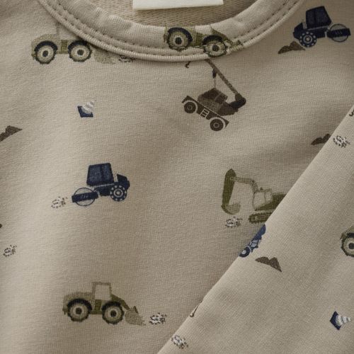 Your young constructor will love this Oxford Tan Jersey T-Shirt, designed for comfort and style! Crafted from soft, breathable cotton, it features a charming construction-themed print that celebrates imaginative play. The relaxed fit works perfectly for active adventures, whether worn solo on warm days or layered when temperatures drop. Durable and easy to care for, this tee pairs beautifully with matching bottoms to create a coordinated look that's ready for building, exploring, and making memories.