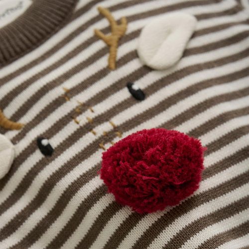 This cozy knit sweater is the perfect addition to any child's winter wardrobe! Crafted in a rich chocolate chip brown, it combines comfort with festive charm. The long sleeves keep little arms warm, while the convenient snap buttons at the shoulders make getting dressed a breeze—no struggling with tight necklines. Ribbed cuffs hug the wrists just right, preventing cold air from sneaking in during playtime. The star of the show? An adorable 3D red-nosed reindeer applique on the front that brings holiday magic to life. Whether you're heading to a family gathering or just want to spread seasonal cheer, this sweater delivers both style and practicality. It's the kind of piece kids actually want to wear, and parents love for its durability and easy care.
