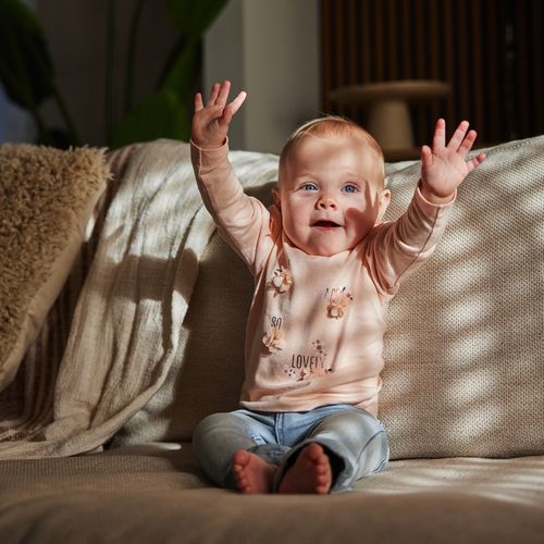 Dress up your little girl's wardrobe with this charming long-sleeve tee featuring delicate floral prints across the front. The soft, stretchy cotton fabric keeps her comfortable all day long, while subtle puffy sleeves add a whimsical flair. Perfect for pairing with jeans, leggings, or a skirt, this light pink Dirkje shirt brings effortless style and movement to playtime and beyond.