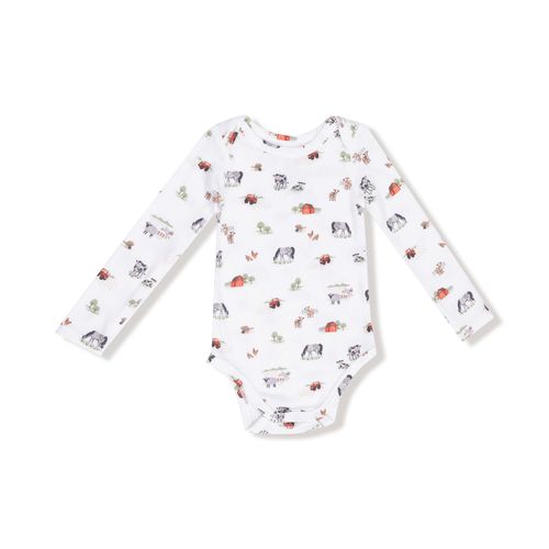 Introducing the Lap Shoulder Bodysuit in Little Farm—the ultimate everyday essential for your little explorer! Crafted from silky ribbed modal, this long-sleeve wonder keeps your baby feeling snug and supported through all their adventures. The snap closures make diaper changes quick and painless, while the stretchy, breathable fabric adapts to every wiggle and giggle. Layer it under outfits for extra warmth or let it shine on its own—this versatile piece works hard so you don't have to. From morning playtime to cozy naptime, it's the one piece you'll reach for again and again!